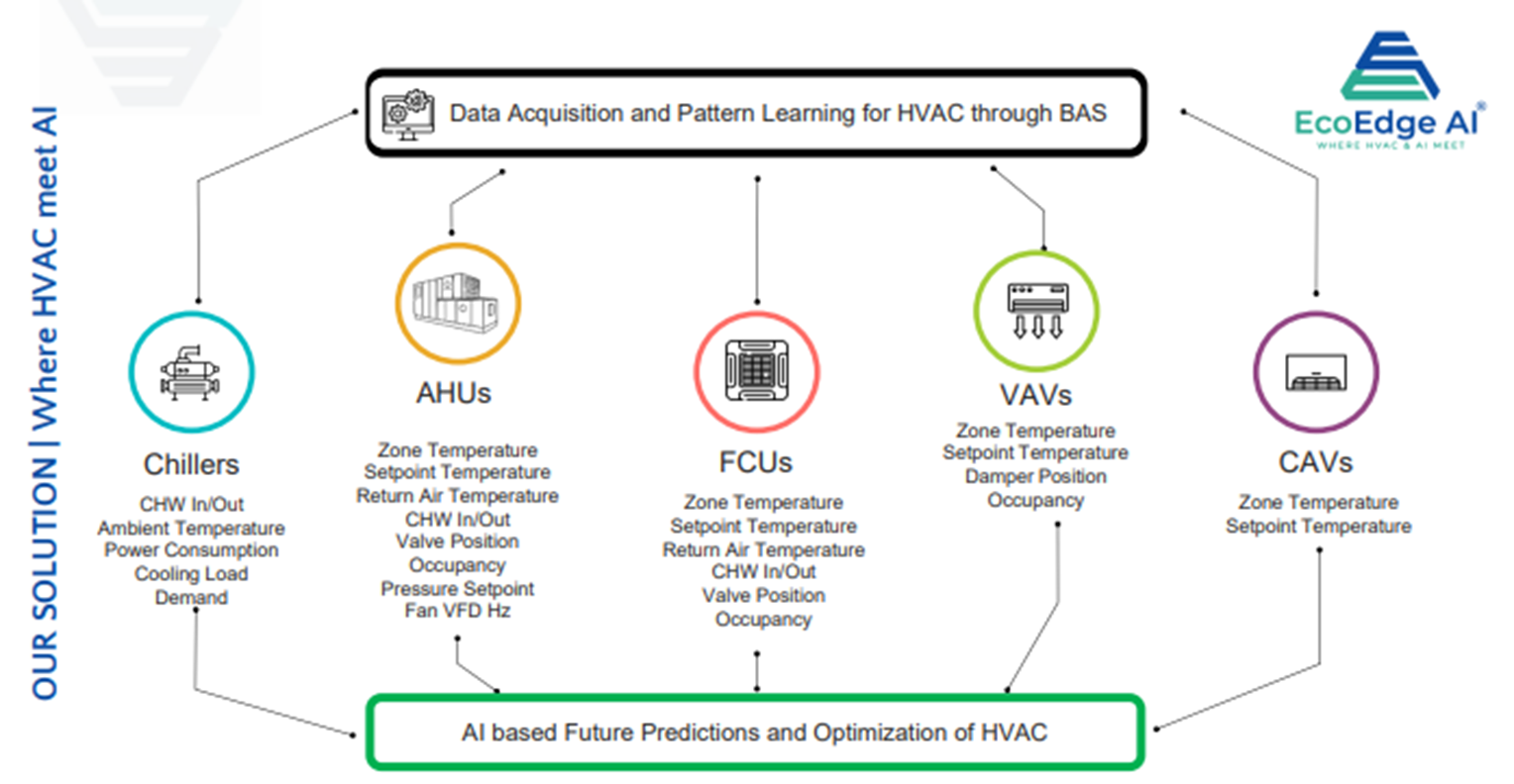 Our Mode of action : Utilize of Machine Learning to analyze usage patterns, integrate external data and enable AI to drive data-centric decisions, enhancing HVAC efficiency.
